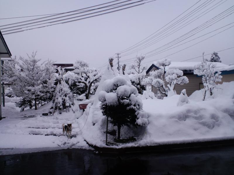 昨日から久々の雪降りです。重そうな雪が降ってました。