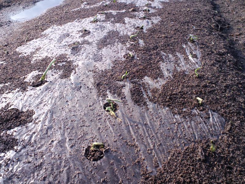 ちょっと植え付けが遅れたため、小さな芽と