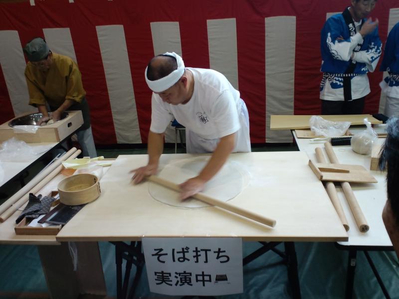 目玉?は、市長自らの「蕎麦打ち実演」。どこから見ても蕎麦