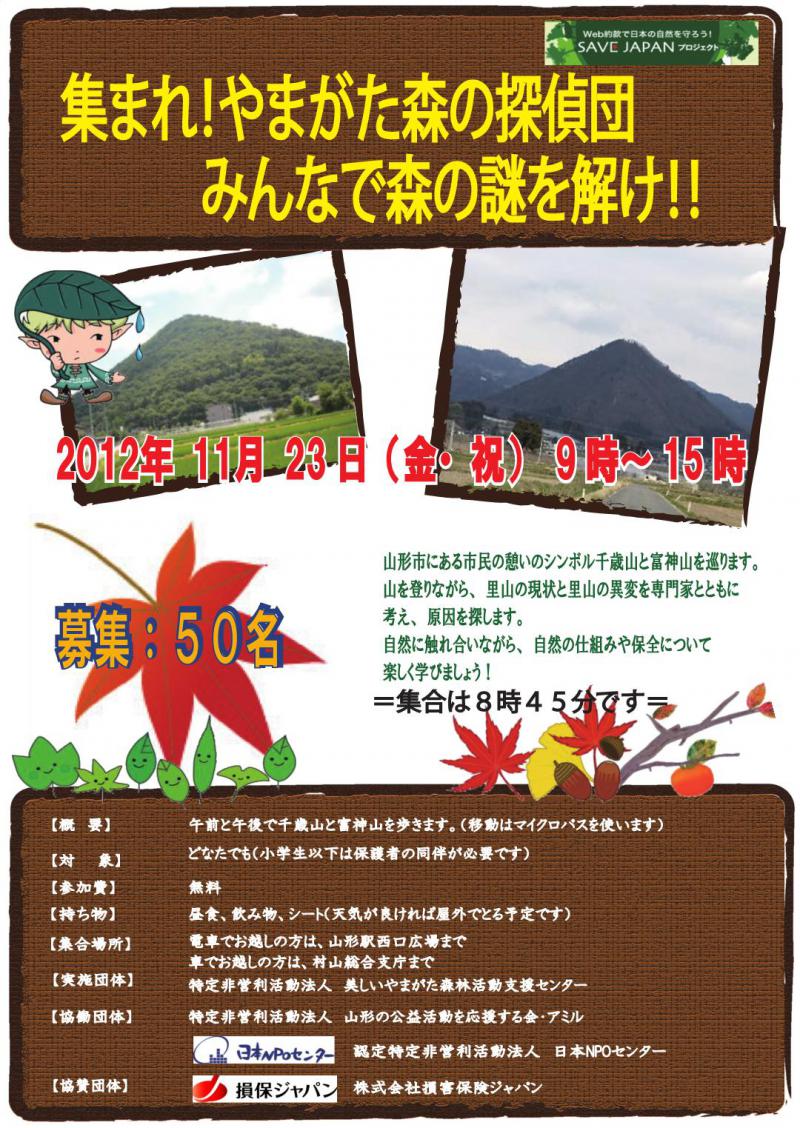 損保ジャパンの環境保全事業の一環として、当法人とNPO法人 山形の公益活動を応援する会・アミルやNPO法人 日本NPOセンターなどの連携で開催します。