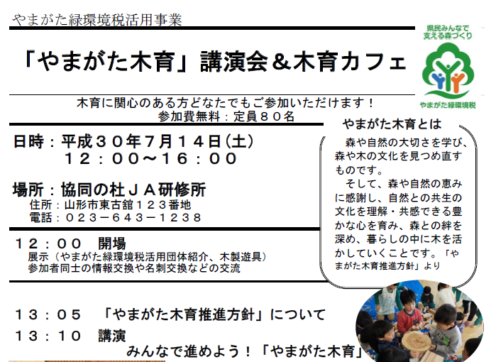 山形県みどり自然課より「木育講演会」の案内が届きました。