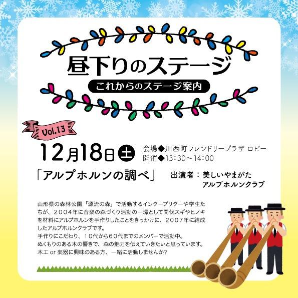 川西町フレンドリープラザ劇場のロビーコンサート「昼下がりのステージ」にこの度当センターのアルプホルンクラブが出演します。