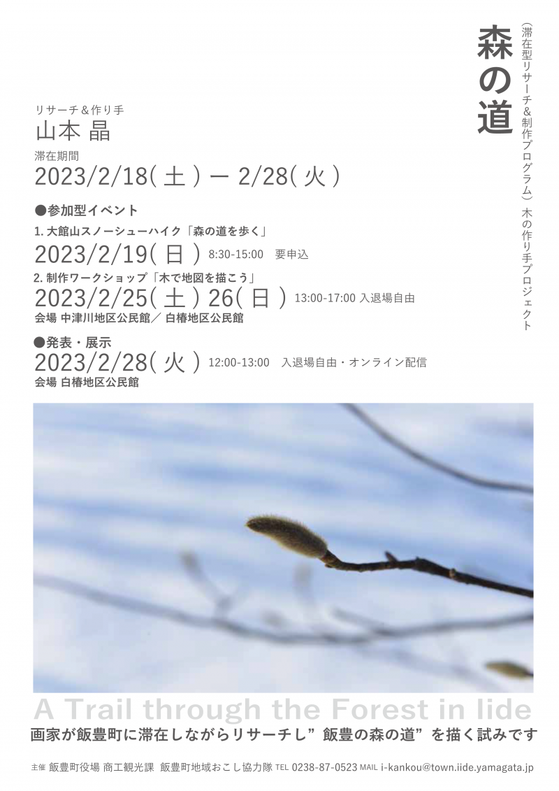 この度は造形アーチスト山本 亜氏による雪深い飯豊の森でいにしえの「塩の道」をキーワードにしたアーティストインレジデンスです。