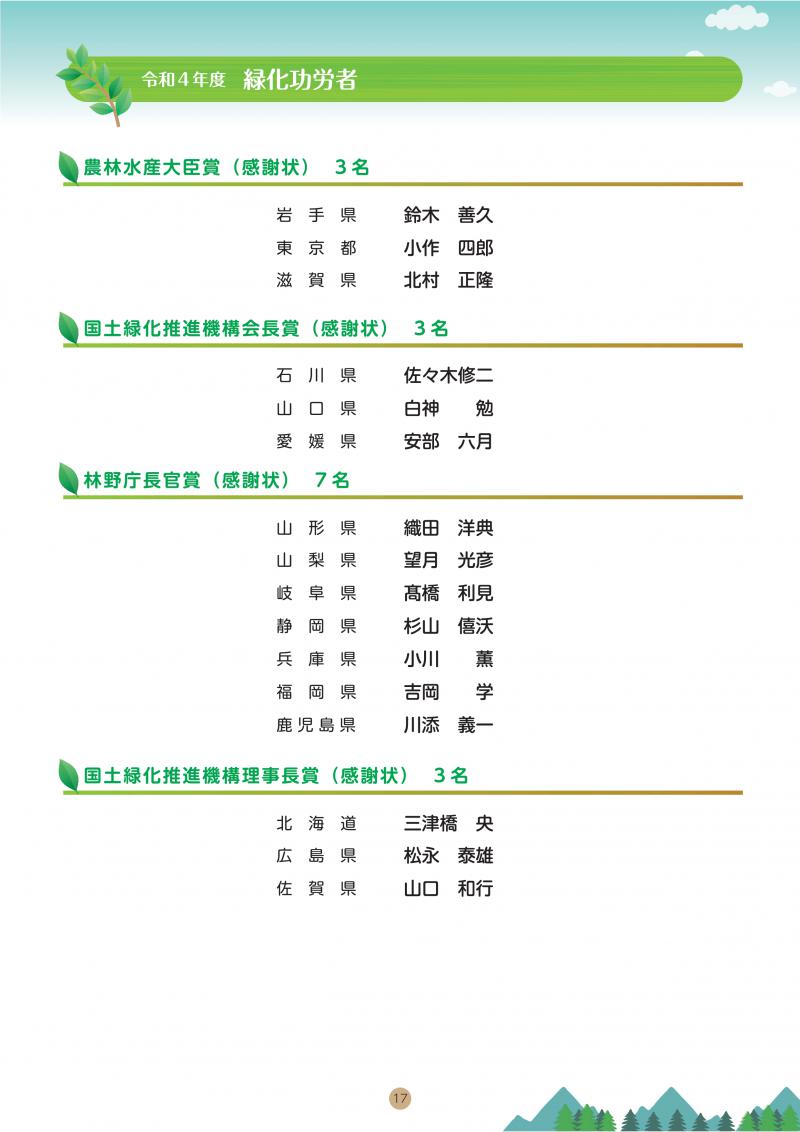 引続き、置賜地区の緑化功労者、緑化運動標語、ポスターコンクールの最優秀賞受賞者の表彰も行われ、出席した森づくり関係者60名に紹介されました。