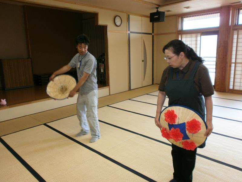花笠おどりマスターのため、花笠の湯の手伝いをしながら練習するのです。