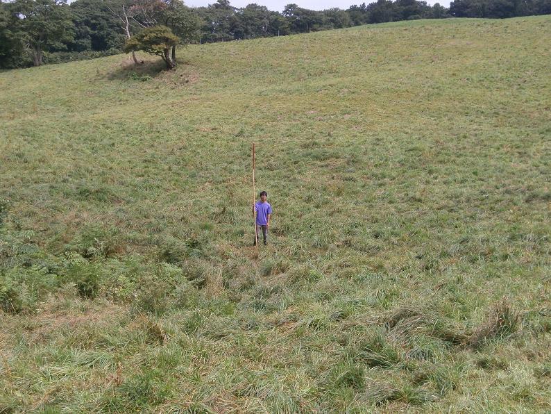 写真は牛がそっちへ逃げないようにと、保険として置き去りにされる石川くんです。