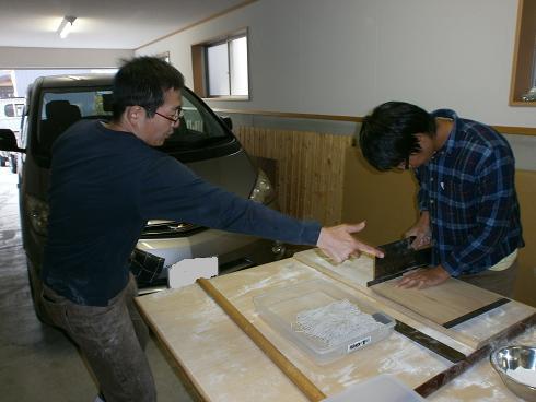 そば打ち指導にいっそうの檄が飛ぶ!