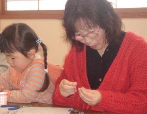 ワイヤーにビーズを通す。難しくて大変でした。