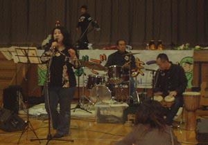 後半はファンキーココナッツのみなさんによる歌と演奏。みんなが知っているアニメの歌や童謡をアレンジした曲など数曲を熱唱。おうちの人と一緒に歌っているお友達も多数見られました。