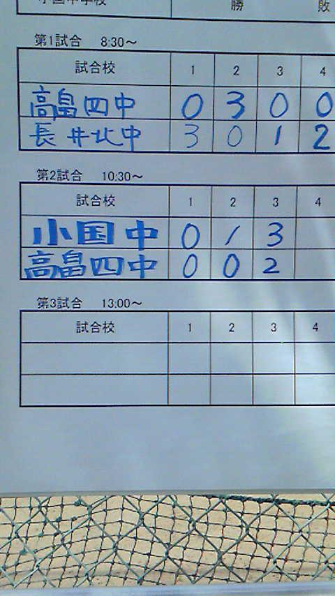 小国中と高畠四中の試合は 4−2で小国中がリードしています!