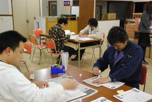 市内の小中学校全校生徒に作成いただいた用紙をひとつひとつ、