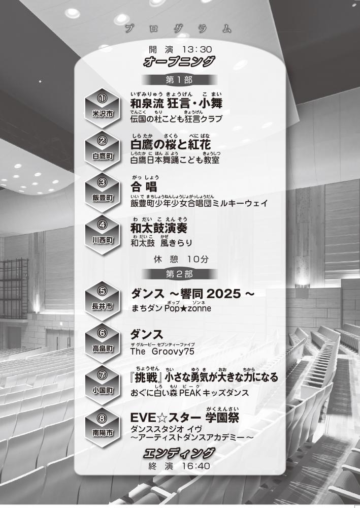 令和7年10月25日(土)開催の「置賜こども芸術祭2025舞台芸術部門」について、当日のプログラムをお知らせします。