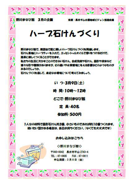 ▼野川まなび館 3月企画 ”ハーブ石けんづくり”
