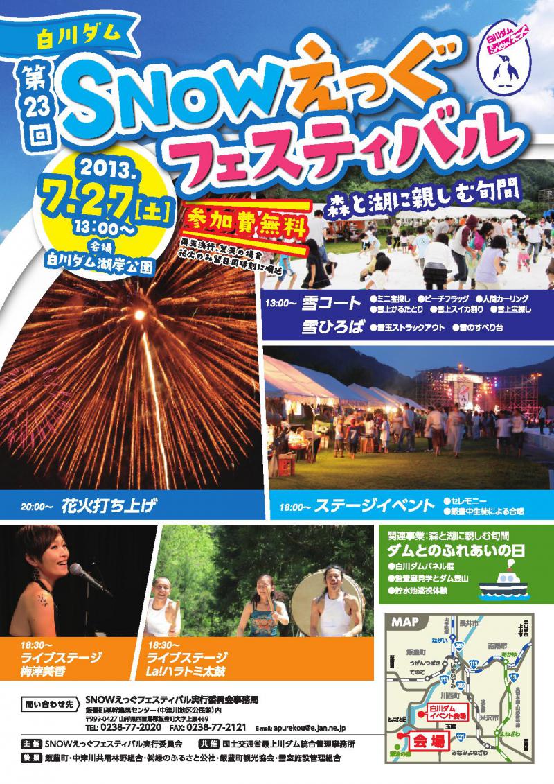 2013_snowegg_ura_3.pdf2013_snowegg_omote_3.pdf豪雪地帯の飯豊町中津川地区で厄介者の「雪」を使って真夏に雪まつりをしちゃおう♪をコンセプトに、