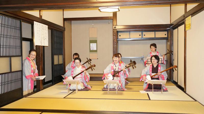 女将たちが季節に合わせた唄や、三味線の演奏・赤湯音頭。