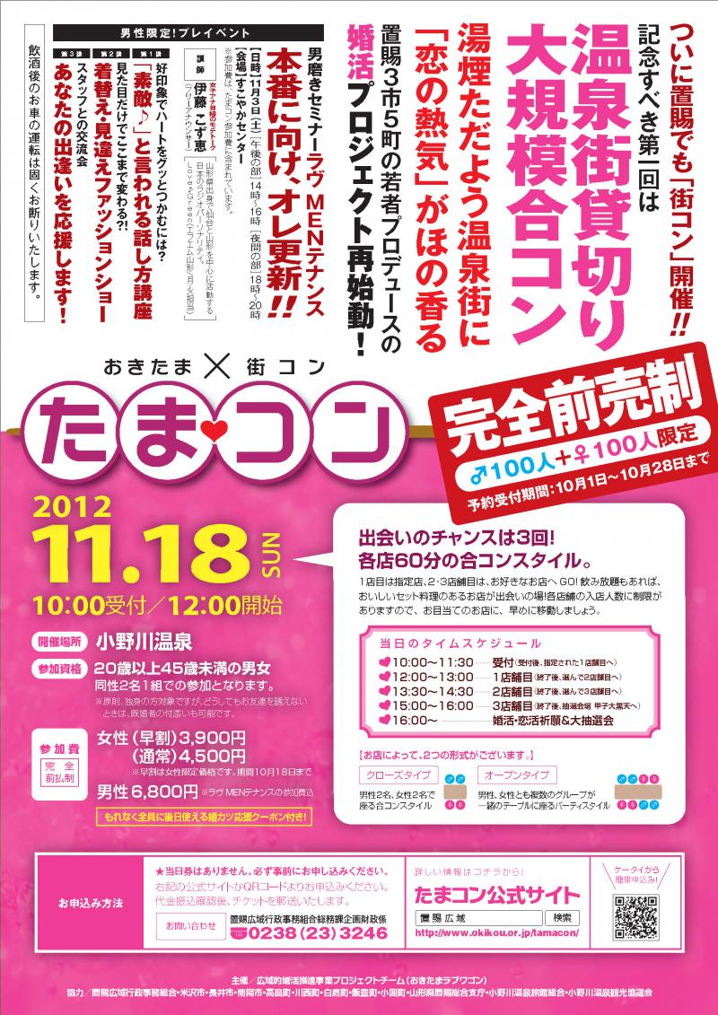 置賜各地で婚活イベントを開催しております。「たまコン」はおきたまLOVEワゴンがプロデュースする置賜初の大規模街コンです。