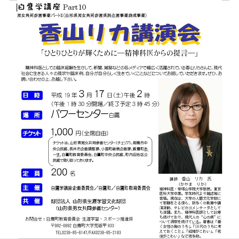 テレビのコメンテータとしても活躍の、あの精神科医・香山リカさんが白鷹町にやってきます。