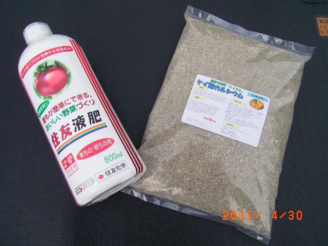 ●液肥は、住友化学がつくったもので、実もの、根もの用、800mlで、¥999 同じ、たまごやから購入した。