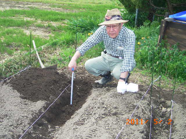●畝(うね)の高さは、ふつうは、10cm位でしょうが、水はけの良くない土の場合、15〜20cm、理想は、30cmと高めを指導されています。