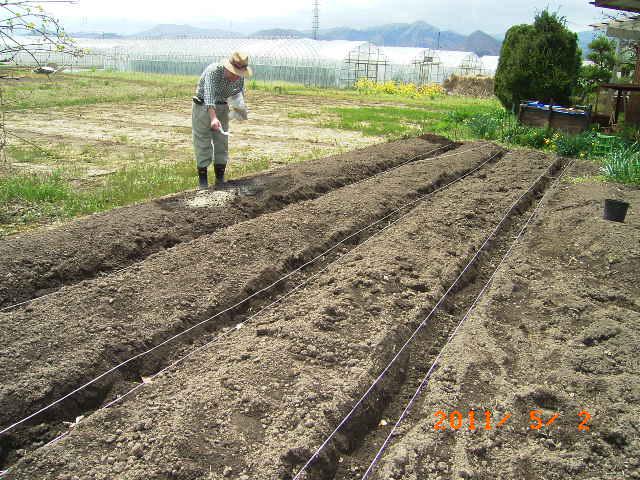 ●畑地の酸性土壌中和にも効き,消石灰にくらべて、酸性を直す速度が、ゆるやかで、効果が長続きするため、永田農法の必須の資材である。