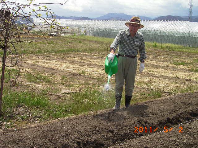 永田農法では、植え付けの前に液肥を施しておく。