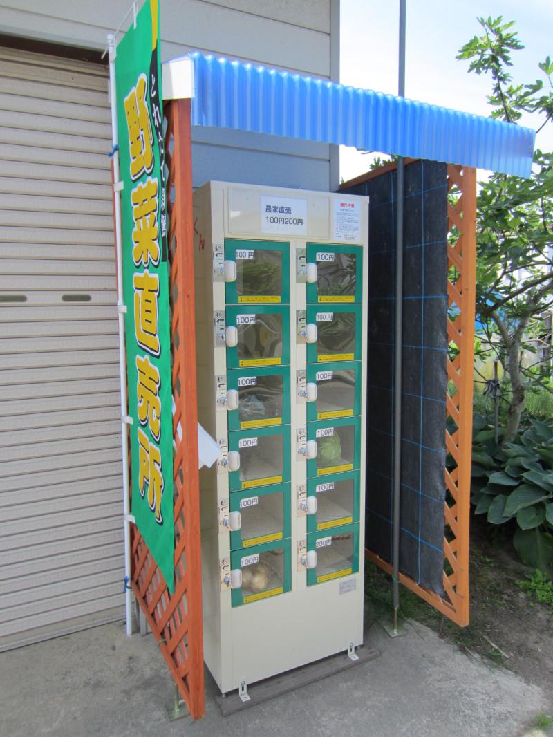 ●これを住宅密集地に複数、設置して、農家が毎朝、採れたての野菜を入れておけば、人手がかからず、売れるので、農作業にかかりきりの農家にとっては、すごーく有利、中間のマージンもとられず、売れただけ全部が収入となる。