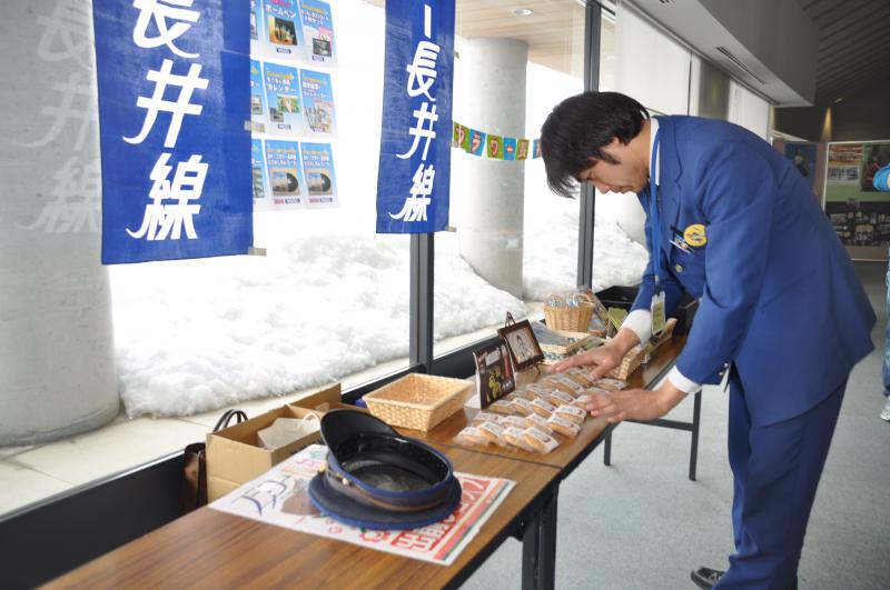 フラワー長井線の物販コーナーです。