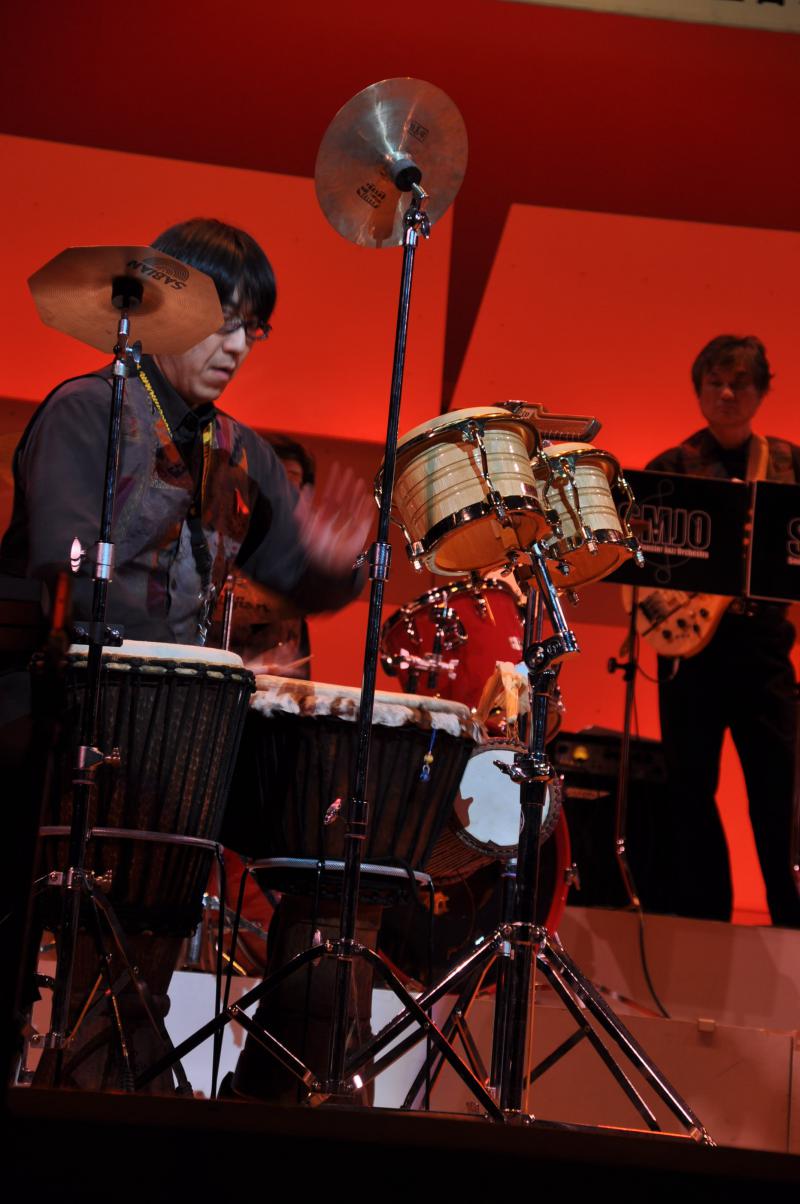 いつも印象的なパーカッション。