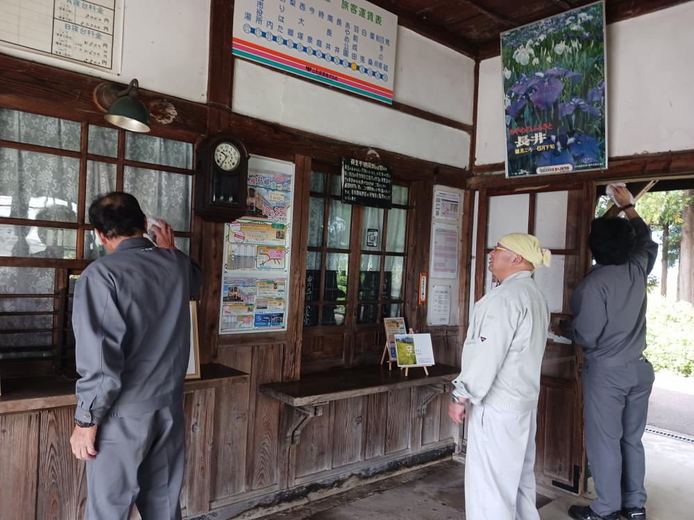 19日(土)は長井マラソン、25日(土)は長井線祭りと東北高校駅伝大会が行われます。全国からおいでになる皆さんをきれいな駅舎でお迎えしたいとの気持ちです。