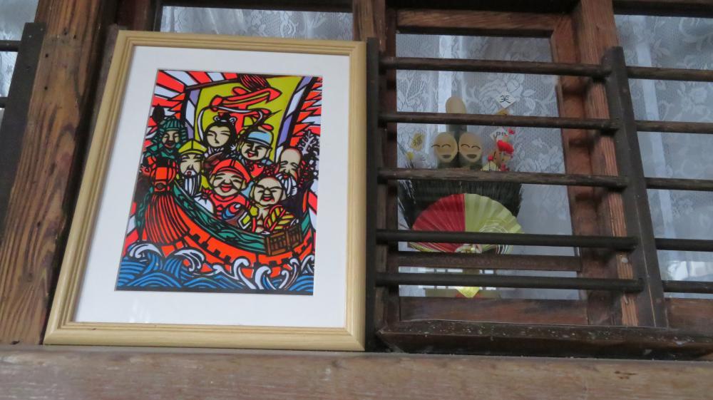 写真は待合室に飾られた七福神の切り絵と笑門来福の門松です。切り絵は昨年、初めて個展をやっていただいた桑原重雄(仙台市在住)さんの作品。ミニ門松は山形鉄道社長であった野村浩志氏からいただいたものです。野村氏は昨年春に亡くなられ、地域おこし協力隊に鉄道写真家の米屋こうじさんが着任されました。新しい出会いと別れがあった年でもありました。