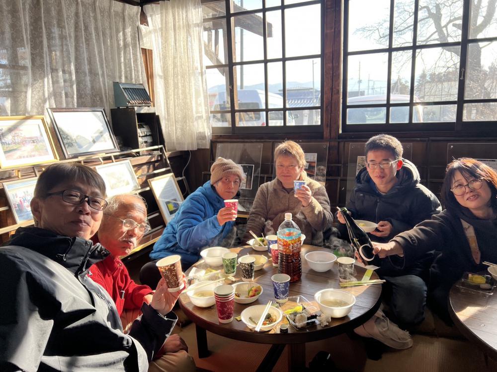 22日の朝は、早朝からの撮影会を終えて、羽前成田駅で朝食。おらだの会の会員の奥さん手作りの味噌汁の香りが、駅茶を包みます。いつもは夕方から酒瓶が立つのですが、朝陽が差し込み、清々しく温かな雰囲気に包まれ、参加された皆さんも楽しそうで何よりでした。そして米屋さんの手帳を見せてもらいましたが、撮影ポイントがびっしりメモされていて驚きました。