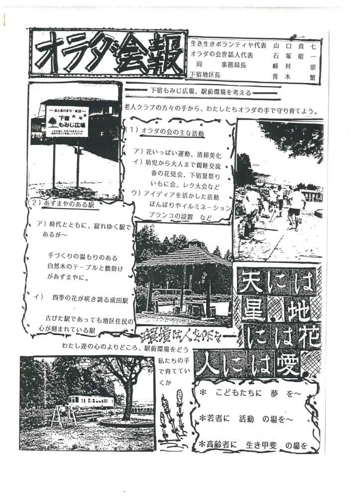 生き生きボランティアの皆さんはもみじ広場の建設をもって引退し、その後の活動を私たち「おらだの会」に託したのでした。おらだの会も発足後25年を過ぎました。長井線の歴史の4分の1を一緒に歩んできたことになります。写真は、おらだの会の最初の会報です。読み返してみて、ここにおらだの会の原点があるのだ、と改めて思います。