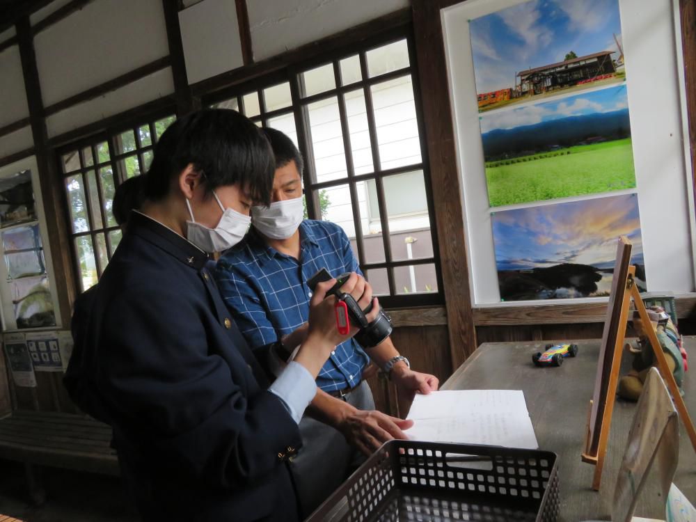 【おらだの会】写真は、駅舎を取材する日大山形放送部の皆さん。