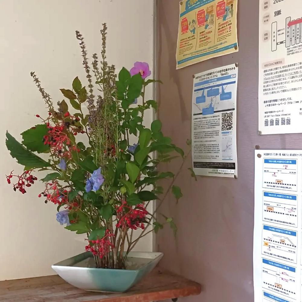 羽前沼沢駅は1983年(昭和58年)に無人駅となり、同年12月に現在の駅舎が完成している。 待合室に入ると驚くことに花が活けられていた。列車が来ない待合室に花を活けに来る人がいたのだ。誰が、どんな思いで活けているのだろうか。改めて待合室を見ると、他の駅と同様に狭い部屋であるが、この駅には花器を上げる台が設置されていた。設計者の意図であったのか、この小さな気遣いが活け花を飾る人を登場させたように思えた。限られたスペースではあるが、ここで少しだけでも憩って欲しい、との声が聞こえたように思えた。駅こそが鉄道を愛する住民の拠り所であり、鉄道会社と住民をつなぐ結節点なのだと思う。