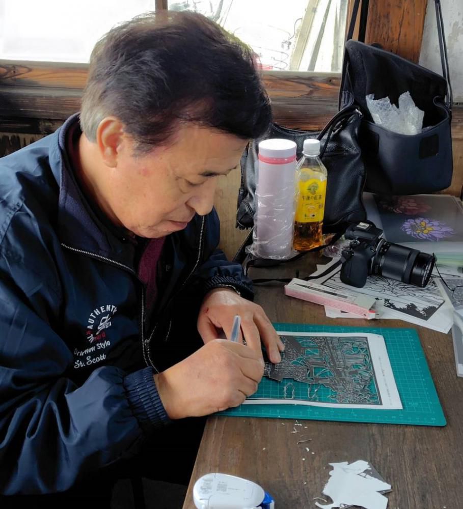 突然に何もすることがなくなり、ボーっとしていると悲しくて、不安で、とても情けなかったそうです。とにかく何かやらなければと悶々としていた時に思い出したのが、書棚の奥にあった切り絵作りの本。以来、独学で切り絵の世界を究めて来たのだそうです。