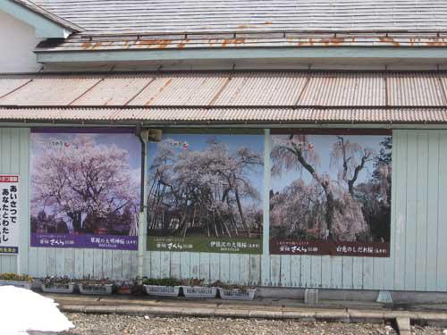 長井を代表する伊佐沢の久保桜、草岡の大明神桜、白兎のしだれ桜のタペストリーです。