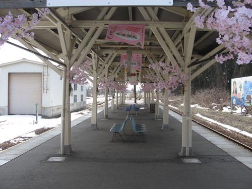 長井駅の桜タペストリー