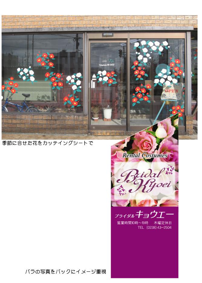 今年もあと残り1ヶ月、はやいものです。まもなく街中も雪で真っ白な世界になることでしょう。そこで 店先に花を咲かせようとディスプレーをしました。赤と白の椿をガラスいっぱいに咲かせにぎやかに目を楽しませてくれます。毎回季節に合せた花を考えていますが 皆さんのお店ではいかがでしょうか?