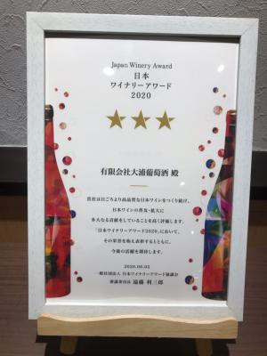 新型コロナウイルスの影響で、商売は厳しい状況が続きますが、ちょっとうれしいニュースが。日本のワイナリーを格付けする「日本ワイナリーアワード2020」にて、昨年に続き2年連続三ツ星ワイナリーに選ばれました。ありがとうございます。更に向上していきたいと思います。