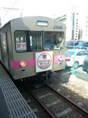 一昨日、お隣福島に行き『Con Vin Wine 列車』に乗車してきました。福島駅から出ている飯坂線ですが、この日限りの列車です。ワイン好きの方がグラス片手に乗車しました。福島だけに新鶴シャルドネのスパークリングワインでまずは車内で乾杯!
