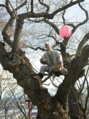 千本桜で有名な赤湯の烏帽子山の桜は、部分的には咲いてるところは少ーしあっけども、ほとんどはまだ蕾のままのような状況です。まだ咲かないので、名物の花咲か爺さんも寂しそうです。
