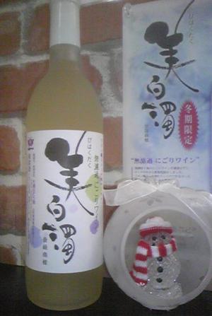 おらいで冬限定でこの時期販売している濁りワイン『美白濁』。雪の色みたく、グラスに注ぐと白くなるのは、発酵が終わってまだ濁った状態の出来たて白ワインを瓶詰めしているからです。これがまさにノンフィルター(無濾過)のワイン。風味が濃厚で、やはり日本酒の濁り酒とどこか共通するところもあります。 今日は日曜日ということもあり、わざわざこのワインをこの時期楽しみに遠方から買いに来て頂いたお客さんも数人いて、大変うれしかったです。今年は雪が多いので、このワインにはぴったりだと思います。 雪の降る期間しか売んねがら、お早めにどうぞっし。 今日は日曜日だげんと、店番やら配達などで忙しく終わりました。貧乏暇なしです。 公式HP 大浦ぶどう酒の商品 大浦ぶどう酒クーポン券(来店用) |