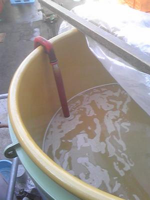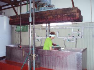 まだ氷結ぶどうでのワイン仕込みは残ってだげんと、一応生のぶどうでのワイン仕込みは今日の甲州がラスト。約3トンの地元産甲州を破砕した後プレス機で搾り、果汁をタンクに送りました。糖度もあり、適度に酸味もあり、良い果汁を得ることが出来ました。