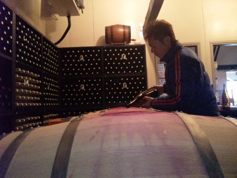 去年仕込んだブラック・クィーンのワインを、先日樽に入れました。やっぱし入れたばりだと、樽がワインを吸うのでけっこう目減りします。酸化を防ぐため満量にさんなねげんと、その補充作業をしました。1回目は補充用のワインをけっこう使います。去年のブラック・クィーン、除梗破砕機さ茎かなりひっかかって難儀して仕込みしたげんと、例年より酸味も少なく果実感あるワインに仕上がりました。