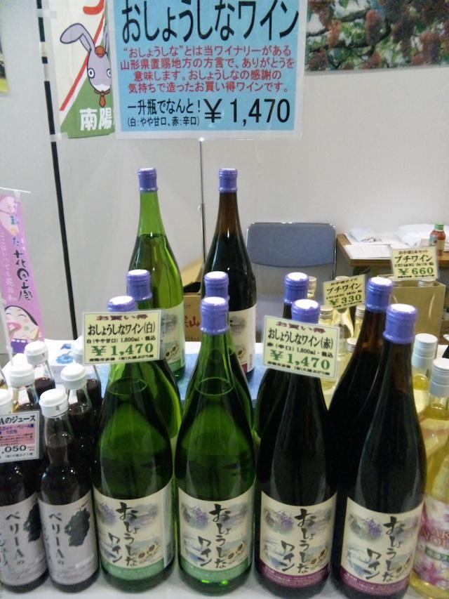 今回初めて白石さ持っていった『おしょうしなワイン』(画像)が好評でした。おらいの地方では、“おしょうしな”は“ありがとう”の意味だげんと、宮城は“おしょしい”というのが“恥ずかしい”という意味なので、言葉が似ているため「これは恥ずかしいワインか?」という質問が多かったです。かなり何回も説明してきたので置賜の方言“おしょうしな”少しPR出来たかと思います。
