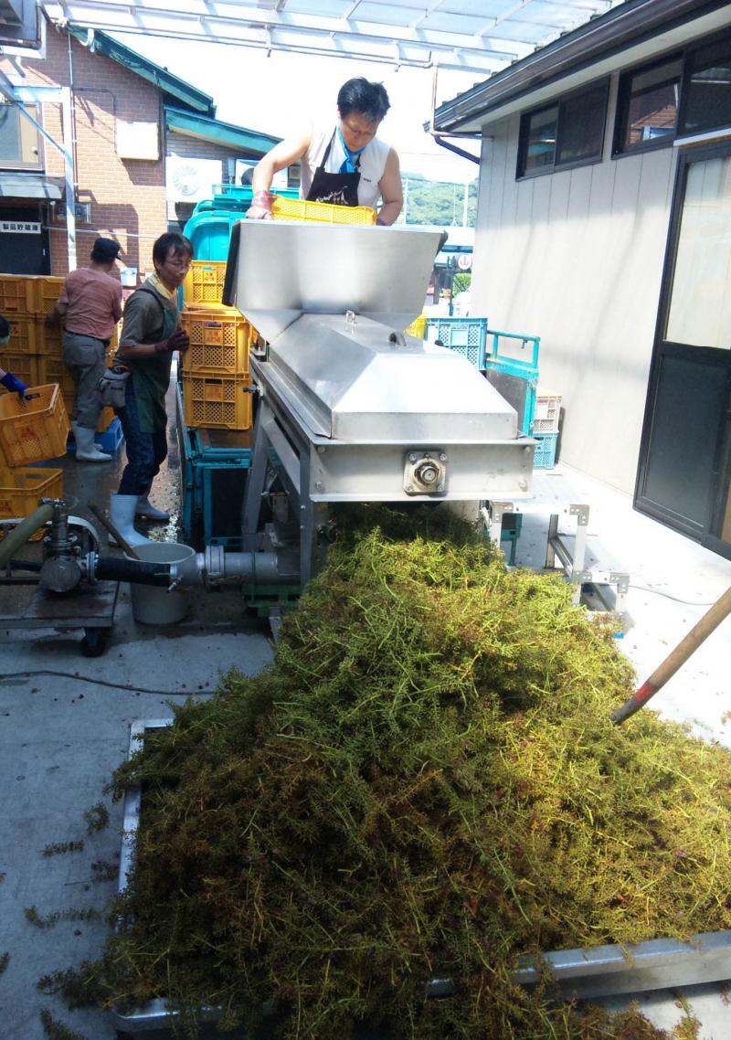 昨日は、毎年この時期ワイン仕込み研修でお越し頂いている御取引様と一緒にデラウェアー約5.5トン仕込みました。今年の山形は、連日猛暑日が続き、大変暑い中お疲れ様でございました。