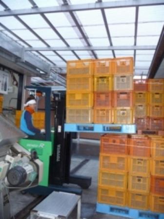 他にも今日はまとまった出荷や瓶詰め作業もあって、かんなし忙しい日だったので、ワイン仕込みをまだうっすらと暗い早朝から始めました。先ずは、フォークリフトで積んでたぶどうを除梗破砕機へ移動。