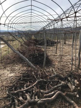 雪が溶けて顔を出して来た昨年剪定した枝を今片付けをしています。昨年は剪定が終わった次の日にドカ雪が降ってきたので、そのままにしていました。