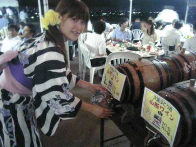 今日は32回の歴史を誇る、「ワインフェスティバルin南陽」がハイジアパークにて行われました。さすがに日中があっついがったげんと、夕方からは涼しくなり、天気にも恵まれ、ワイン日和でした。多くのお客さんが、南陽4社のワインと、米沢牛のバーベキューを楽しんで行かれたようです。今年も盛況に終わり、良かったです。