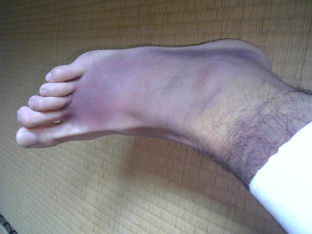先日ケガした右足(膝かぶの下辺り)の内出血が、足首より下に溜まり(画像)、かなりの紫色です(*_*; 痛みがあり、まだ長靴履けないので、毎日サンダルで仕事してます。何かと不便です。早ぐ治っといいげんとなぁ(T_T)